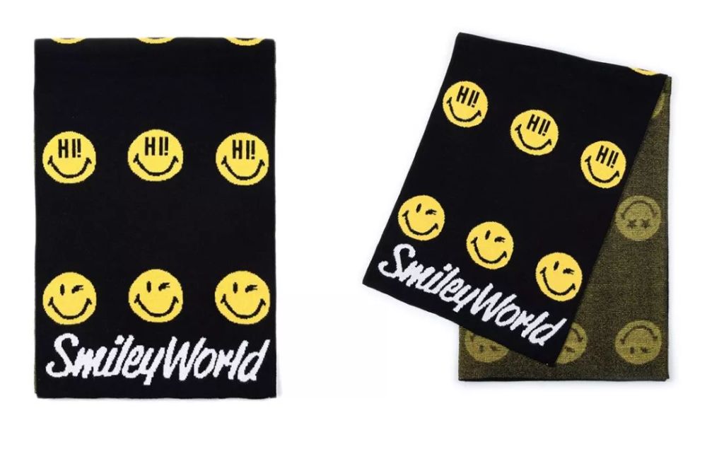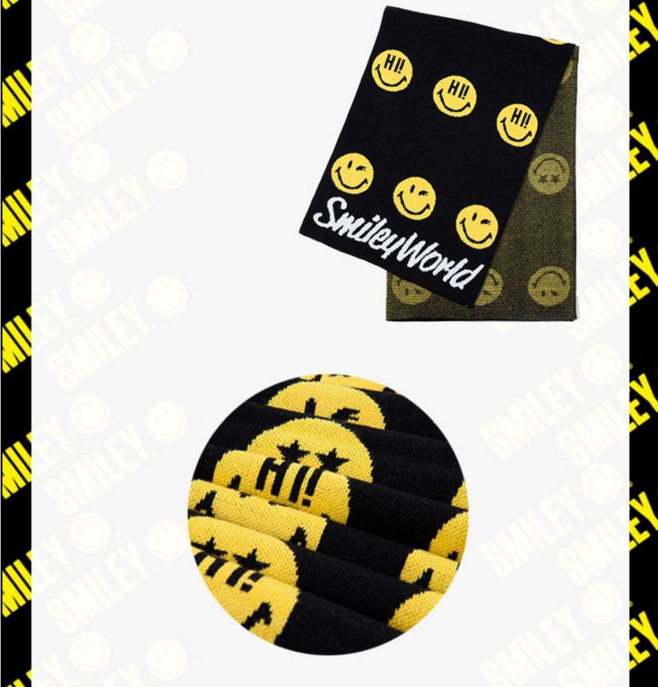 所以SmileyWorld怎么能错过围巾这个传递爱与幸福的单品呢。SmileyWorld的围巾不仅有标志性的笑脸图案,还专门选择了莫代尔面料,亲肤舒适,避免产生扎人的不适感。