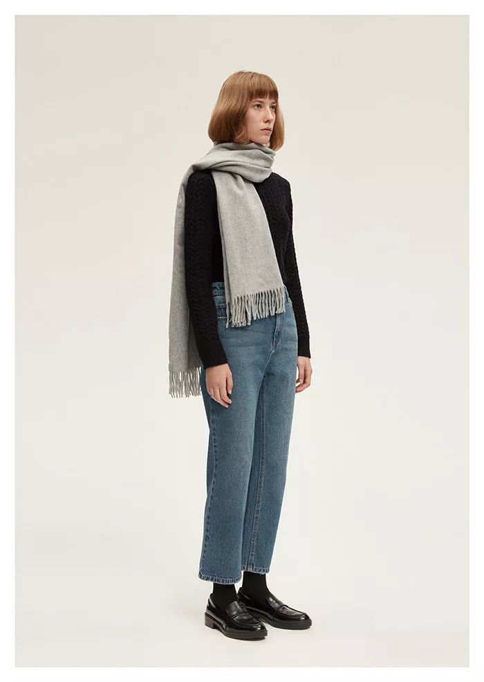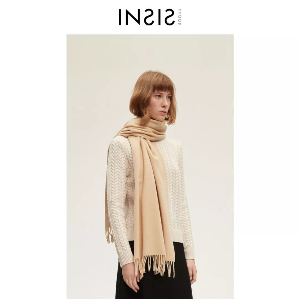INSIS FEMME 的围巾主要以经典二字为主,围巾两侧的流苏整齐细腻,抹平了秋冬穿衣的厚重感。
